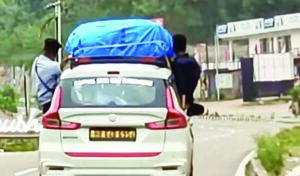 सुंदरनगर में चलती गाड़ी में स्टंट करने पर चालान